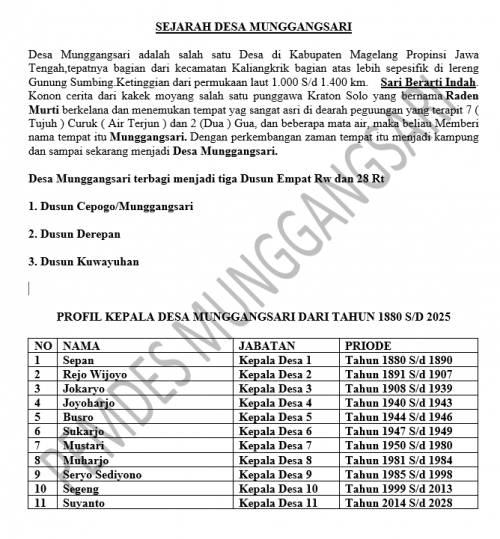 Desa Munggangsari desa penuh cinta.Dengan keindahan alam yang melimpah.Serta masyarakatnya yang ramah tamah.Kita wajib menjaganya.